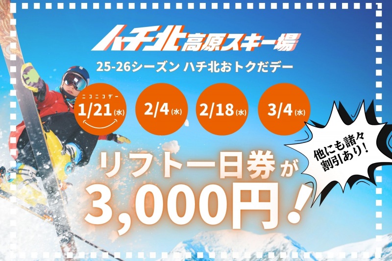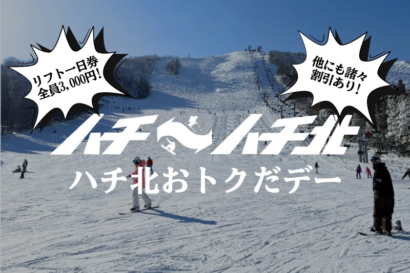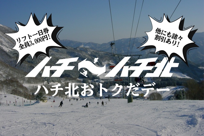 【1/21ほか】ハチ・ハチ北おトクだデー(旧:ハチ・ハチ北スキースノボの日)
