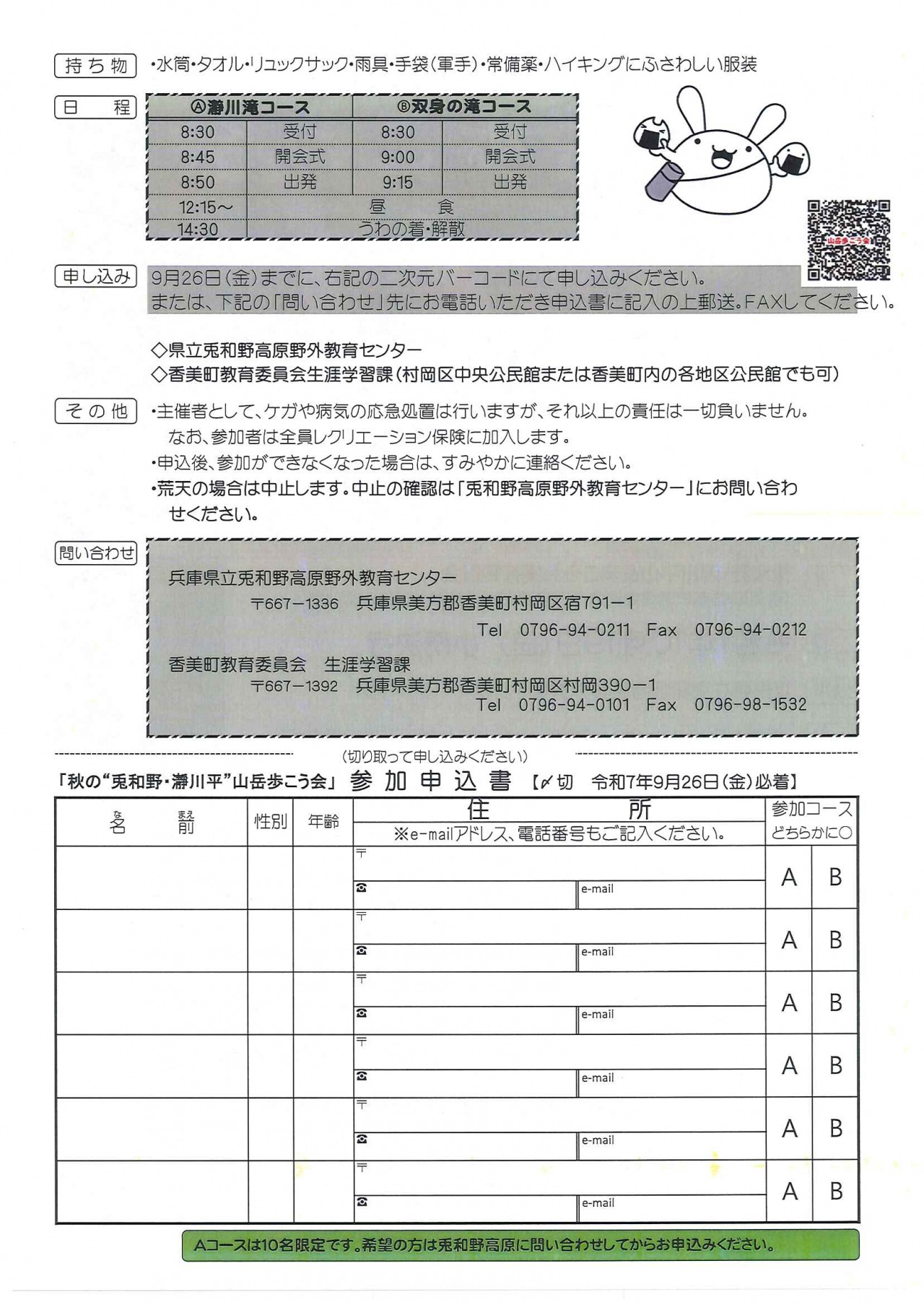 ☆集合場所:兵庫県立兎和野高原野外教育センターグラウンド
