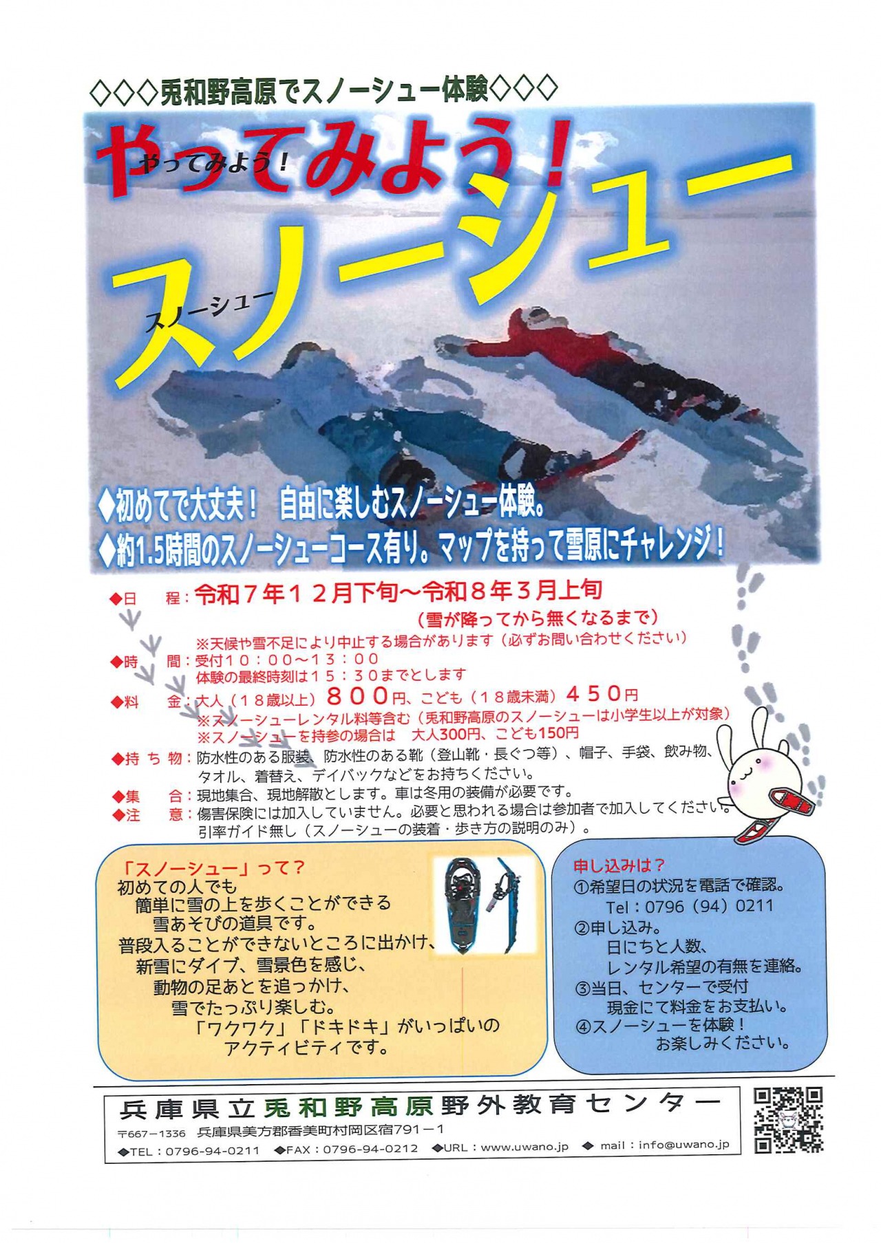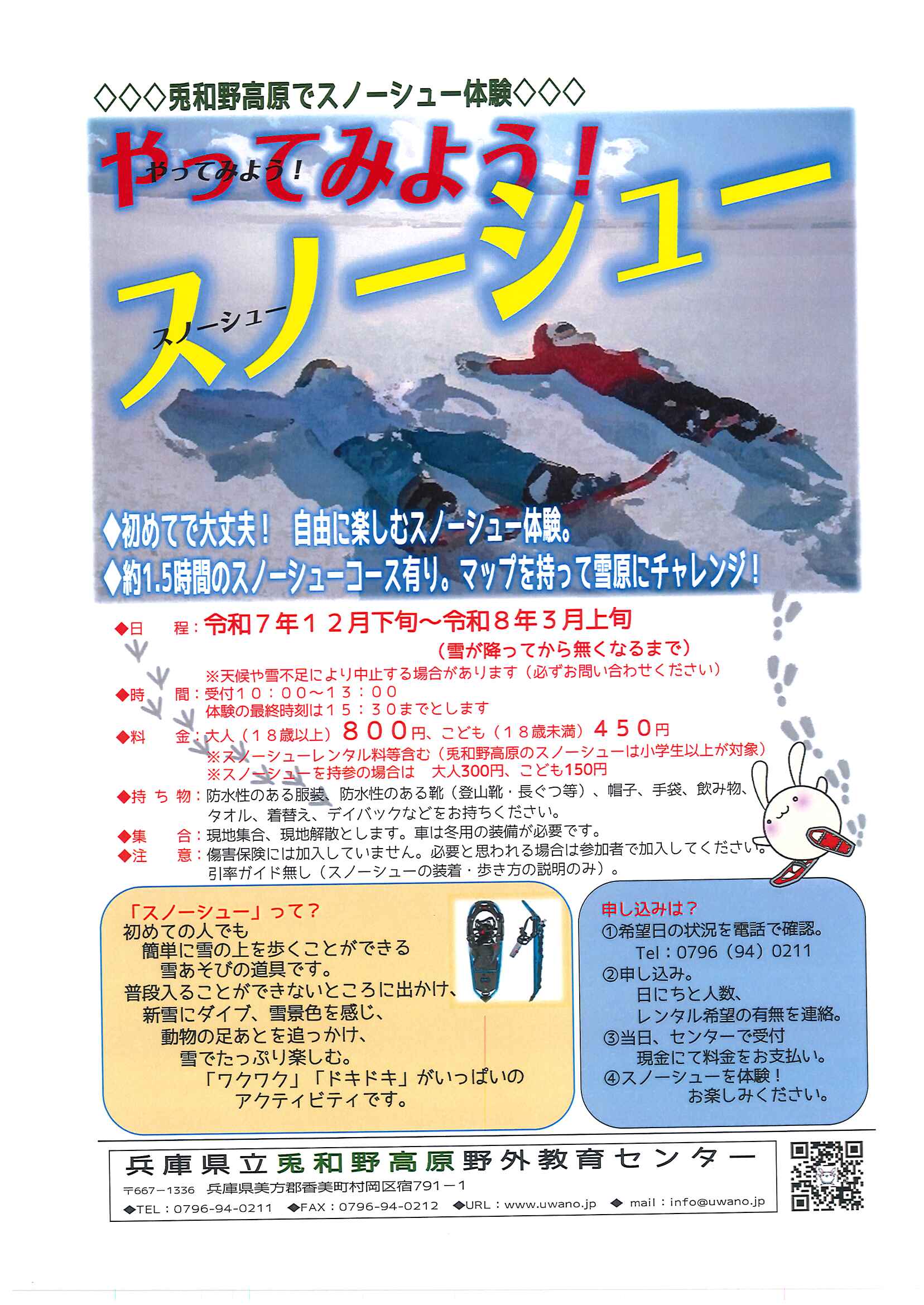 ※スノーシューレンタル料等含む(兎和野高原のスノーシューは小学生以上が対象です)