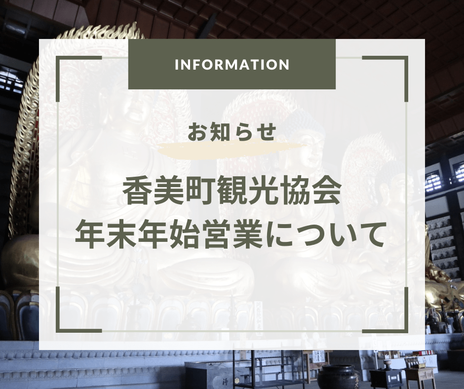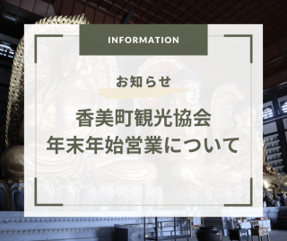 年末年始の営業について 2025.12.05 お知らせ 注目 新着 平素より当観光協会をご利用いただき誠にありがとうございます。香美町内にある各観光協会の年末年始の営業予定は下記のとおりです。■ 小代観光協会・村岡観光協会休業:12月30日(月)~1月3日(金)■ 香住観光協会休業:12月31日(火)~1月3日(金)■ ハチ北観光協会12月20日~スキー場営業終了まで休まず営業いたします。ご不便をおかけいたしますが、何卒ご理解のほどよろしくお願い申し上げます。