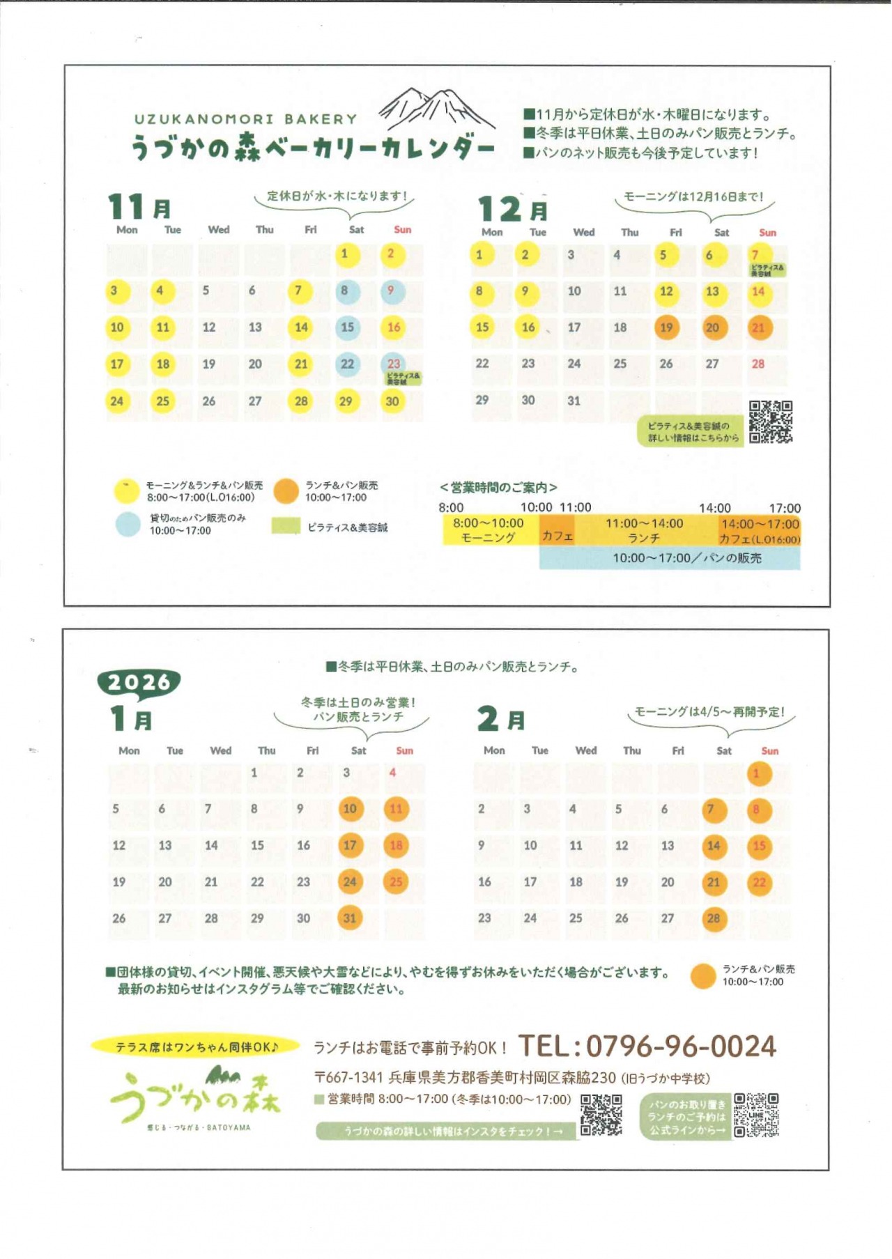 ※冬季は平日休業、土日のみパン販売とランチになります。モーニングは12/16まで。4/5~再開予定。